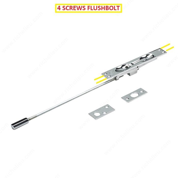 Dans de nombreuses portes commerciales de type nord-américain (vitrines de magasins) ainsi que dans les immeubles résidentiels, les flush bolts (verrous encastrés) sont essentiels pour la sécurité et le bon fonctionnement des portes.