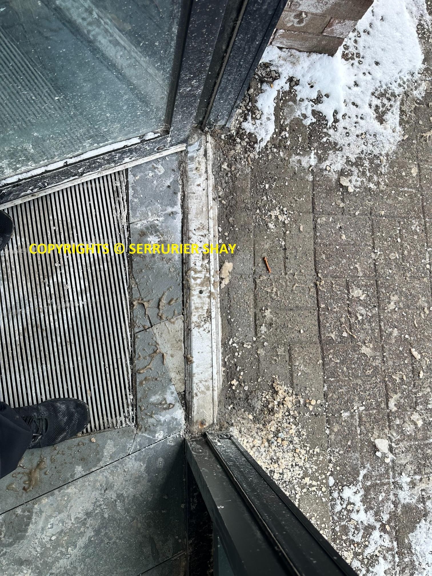 Obstacles : Vérifiez la présence de sel, neige, saleté ou débris sur le sol ou sous le cadre de la porte, surtout en hiver.