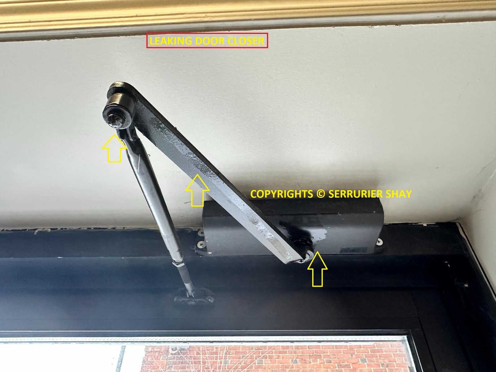Bras du ferme-porte : Parfois, le bras est mal fixé ou déplacé, empêchant le ferme-porte de tirer correctement.