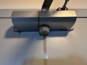 Pas de fuite d’huile = ferme-porte en bon état : Si aucune fuite d’huile n’est visible, cela signifie généralement que le mécanisme fonctionne correctement.